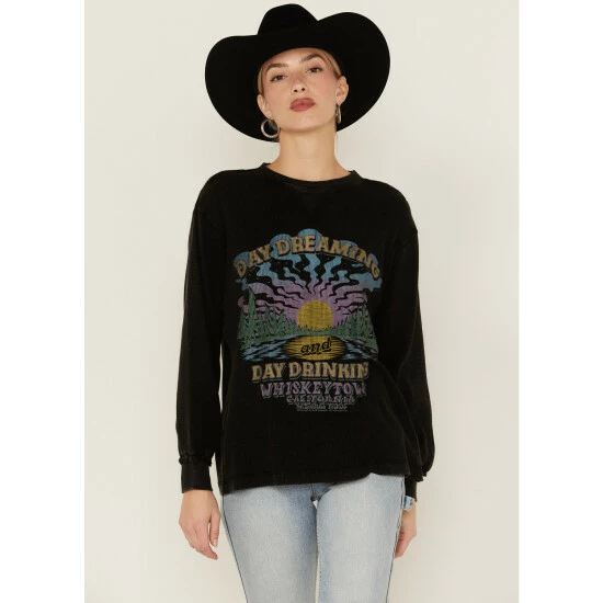 - Front “Day Dreaming and Day Drinking Whiskytown, California” with sunset lake graphic print