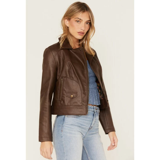 Be the first to review “Brand new ⭐ Cleo + Wolf 👩 Women’s Faux Leather Moto Jacket Brown 🔥” Cancel reply