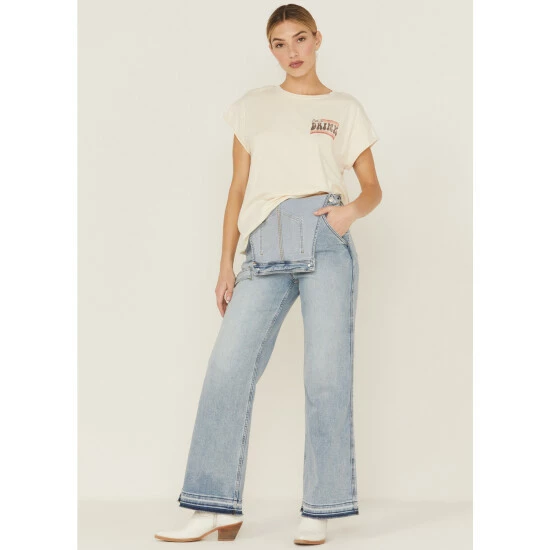 Best Pirce 🔥 Cleo + Wolf 👩 Women’s High Rise Straight Dark Wash Denim 👖 Jeans Dark Medium Wash 🎁
