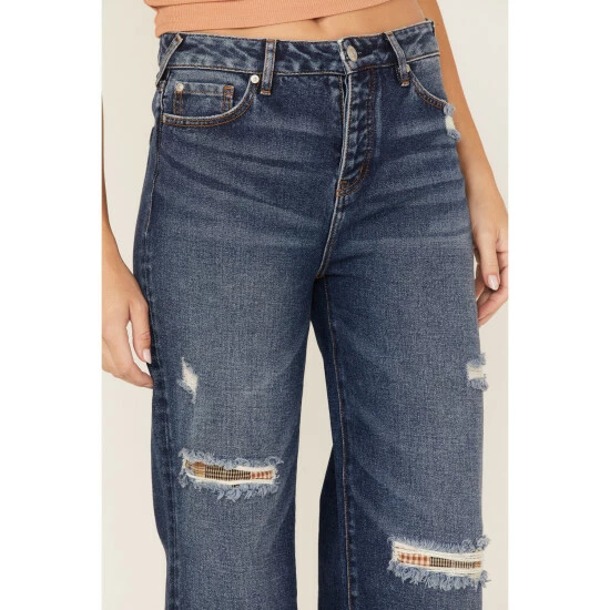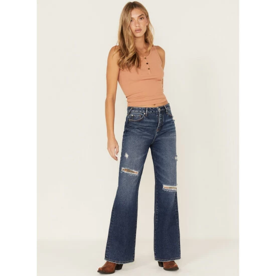 - Distressed knee with patchwork panel