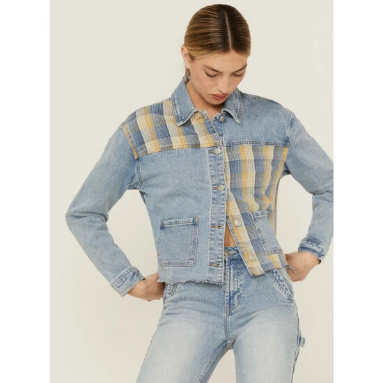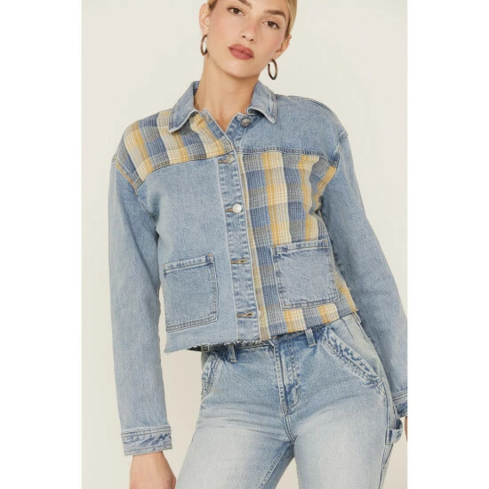 Be the first to review “Best Pirce ❤️ Cleo + Wolf 👩 Women’s Oversized Plaid Mix Denim Cropped Jacket Light Medium Wash 💯” Cancel reply