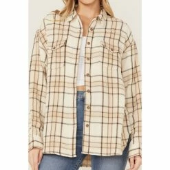 Top 10 ๐ Cleo + Wolf ๐ฉ Women’s Breezy Sprint Taupe Plaid Long Sleeve ๐ Shirt ๐