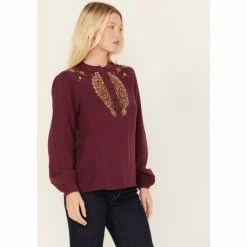 Top 10 ๐คฉ Cleo + Wolf ๐ฉ Women’s Floral Embroidered Blouse Grape โค๏ธ